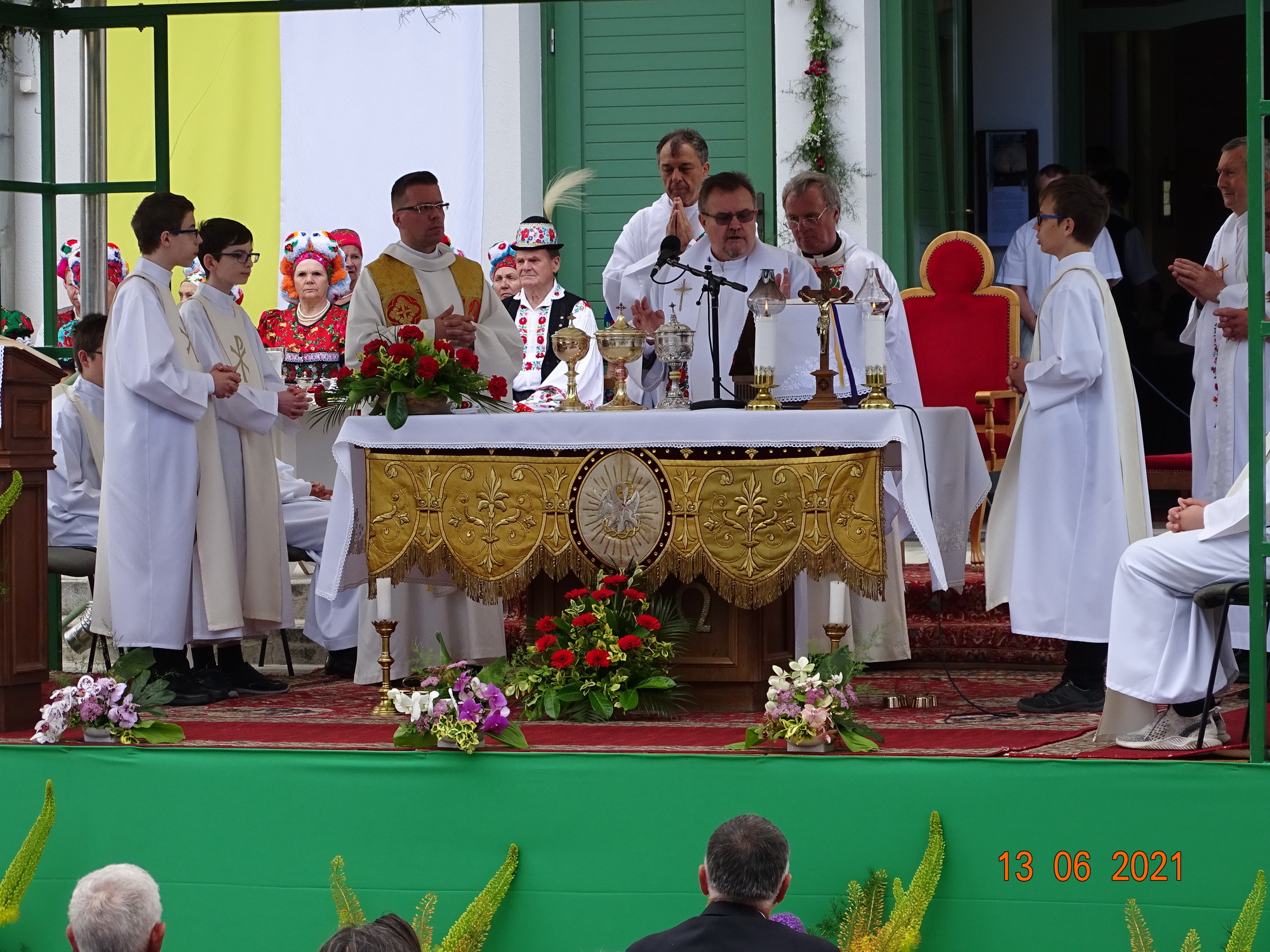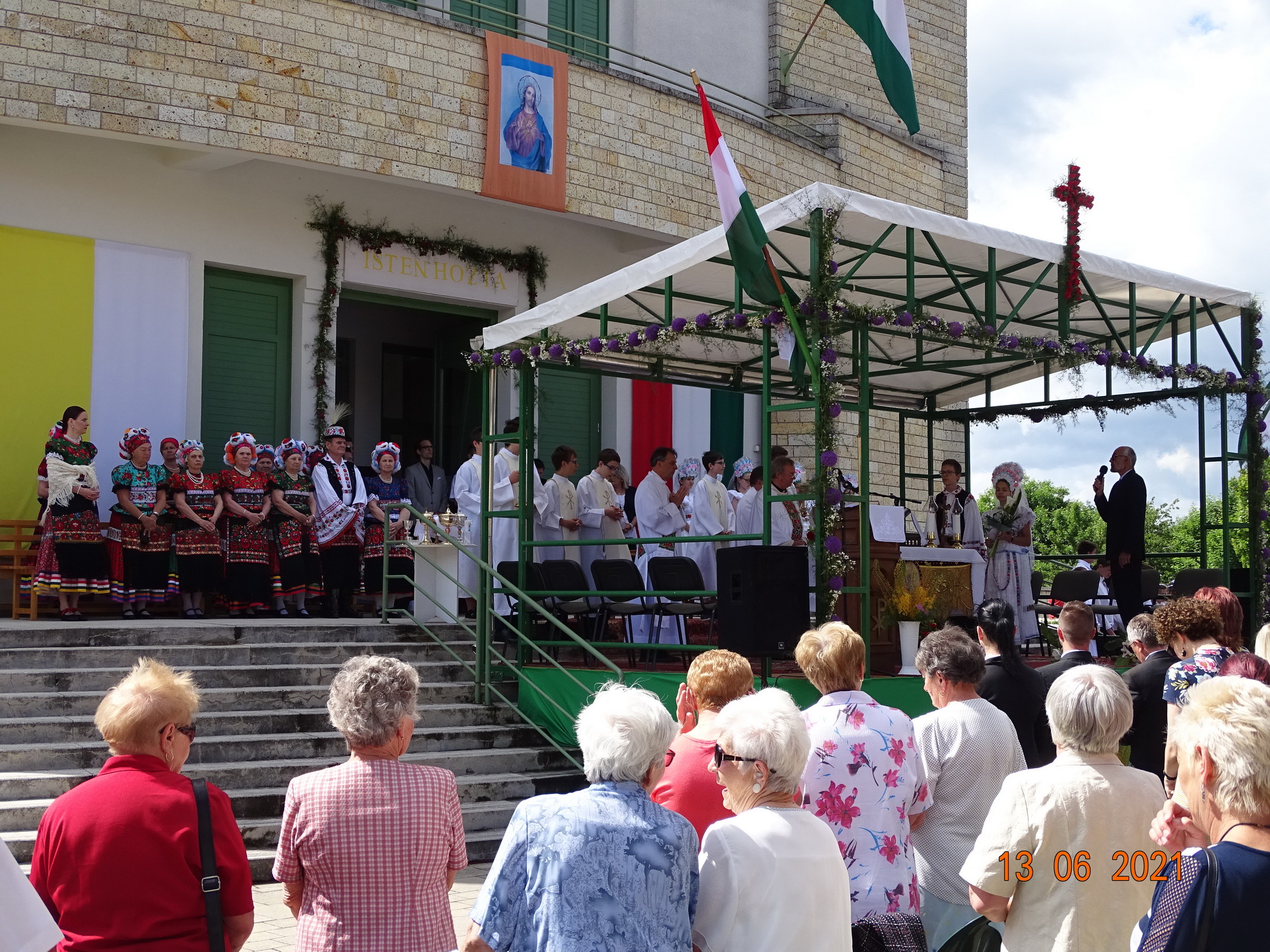 Az ünnepi szentmisére 10 órától került sor a templom előtt, a szabadtéri oltárnál. Meghívott vendégünk, a mise főcelebránsa dr. Németh László pápai prelátus, olaszországi magyar főlelkész volt.