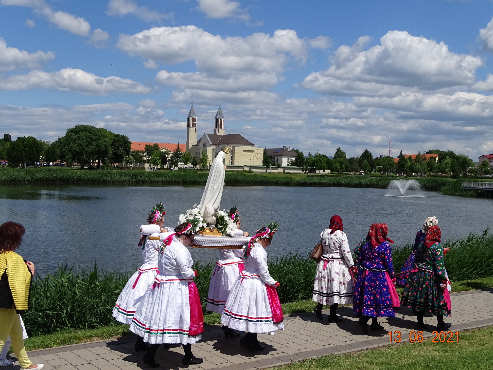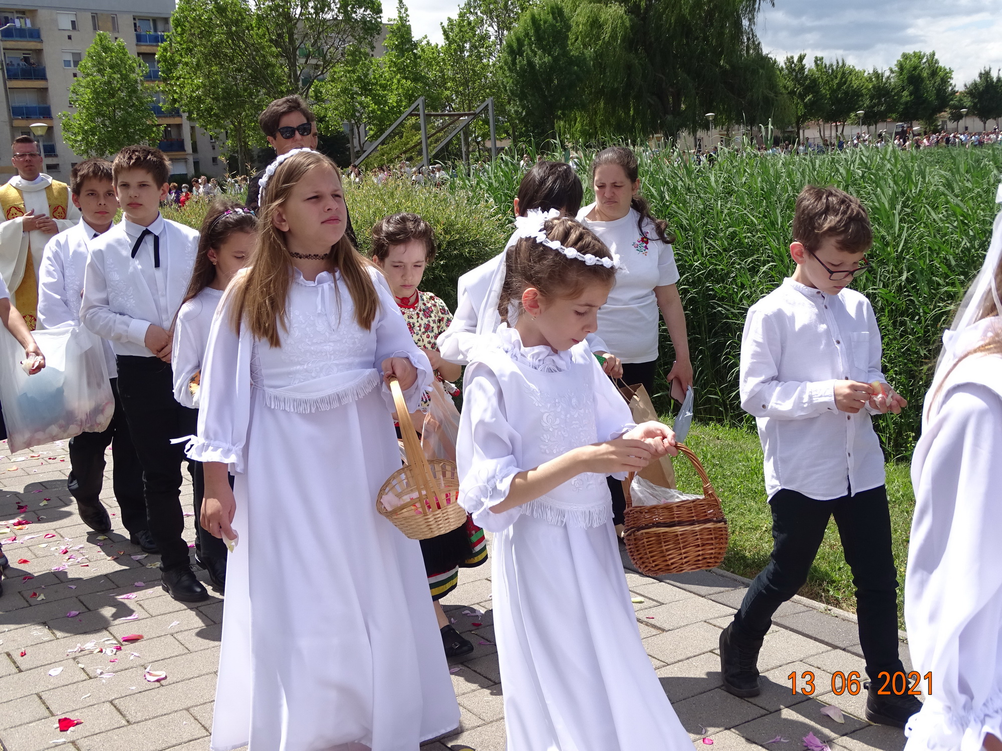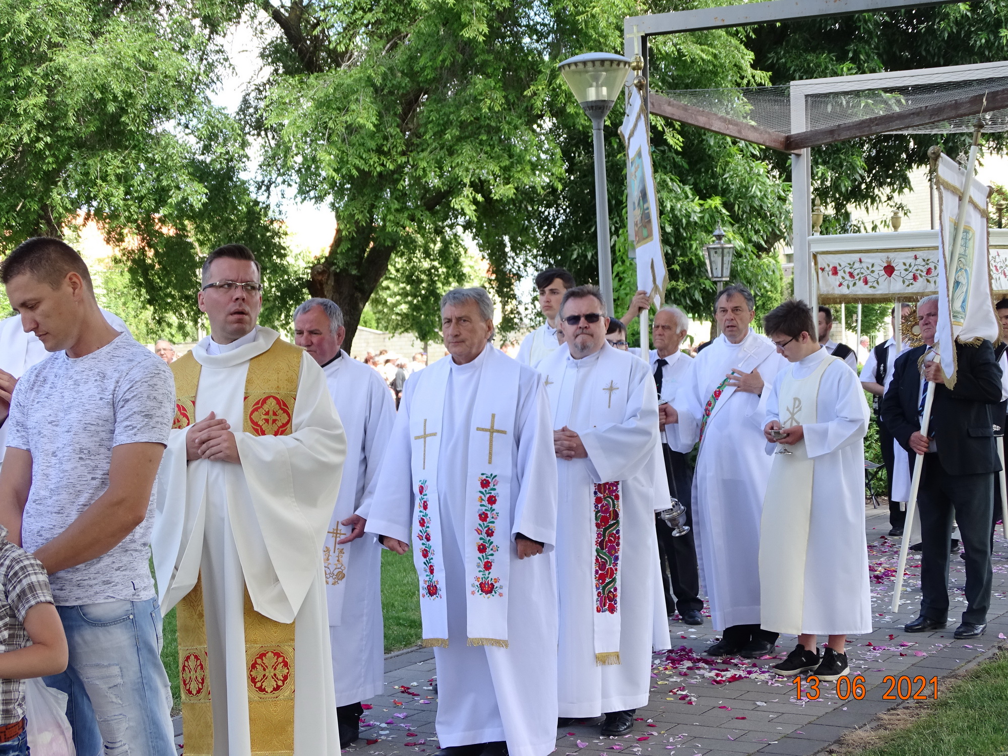 Az ünnepi szentmise után a szokásos körmenetben, a Kavicsos tó körül vonultunk körbe az Oltáriszentséggel, majd ismét betértümnk a templomba, ahol a Szentmise záróáldása következett.